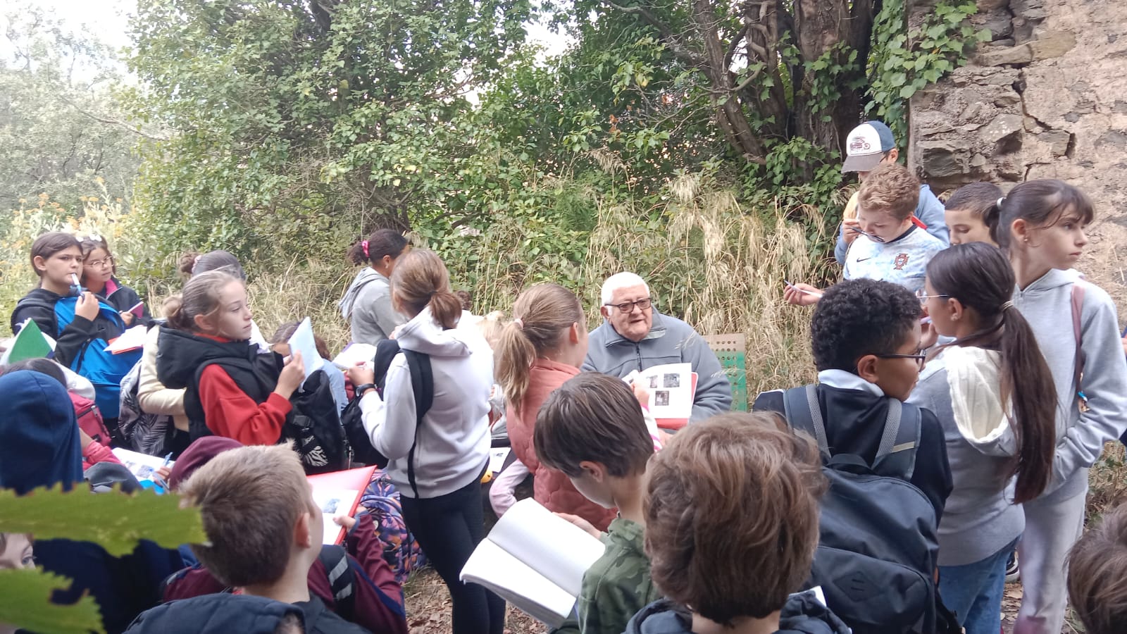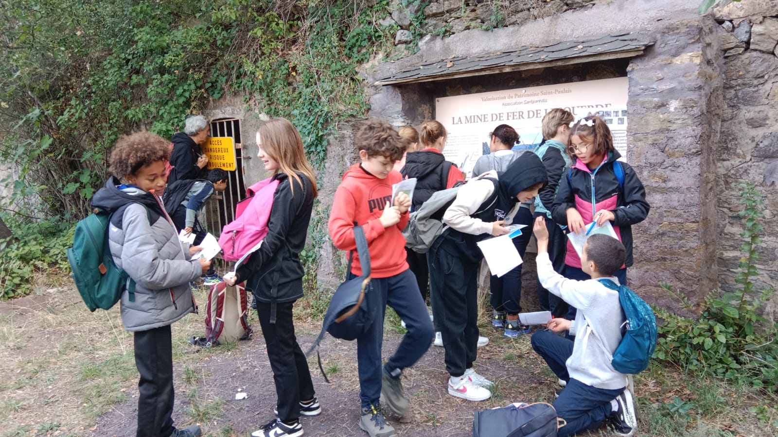 Au cours de cette randonnée, les élèves ont non seulement pu faire de l'éducation physique : 8 km de marche et environ 500 m de dénivelé ! Mais ont également pu découvrir l'ancienne mine de fer, avec les explications de Mr Fernand Cervera :